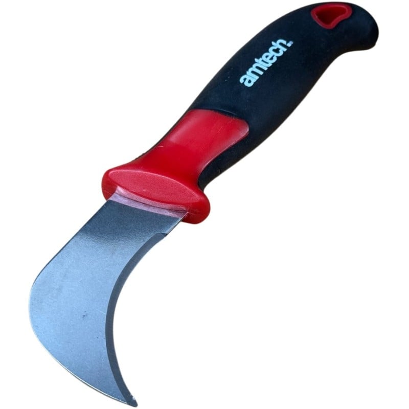 The Amtech Multi Use Hook Lino Knife and Backer Rod Podger Blade U1390 is a versatile hand tool designed for flooring, fitting and sealant preparation tasks. Fitted with a sharp hooked steel blade, it is ideal for cutting and trimming lino, vinyl, carpet and other soft materials with improved control, especially when working into corners, edges and awkward spaces. The pointed hook profile and inner cutting edge help deliver accurate cuts while making detailed trimming easier. The shape of the knife makes it perfect for raking pulling the blade towards yourself to clean out gaps and more.