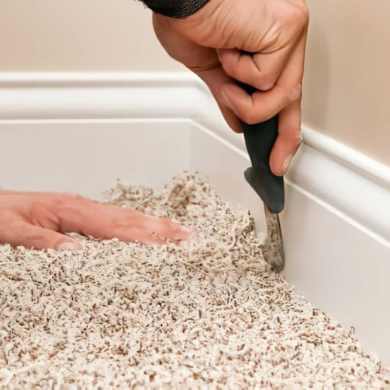 Tucking flooring materials into awkward gaps
