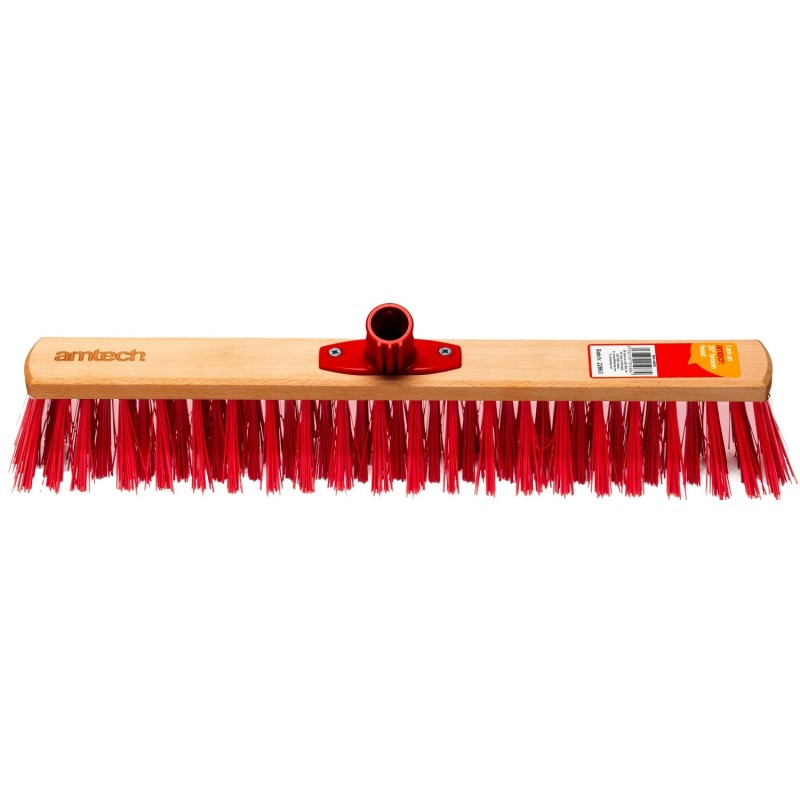 The Amtech 20 inch Wide (Stiff Red PVC) Outdoor Grade Garden Broom Head and Screw Thread Handle a tough, 20" 500mm wide broom head designed for effective sweeping and scrubbing on rough and hard surfaces. Made for clearing bigger areas quickly and efficiently. With its wide 500mm head and stiff red PVC bristles, it is ideal for shifting leaves, grit, dirt and general debris from hard surfaces where strong sweeping action is needed. The increased width helps cover more ground with each pass, making it a useful choice for patios, driveways, yards, garage floors and workshop spaces.