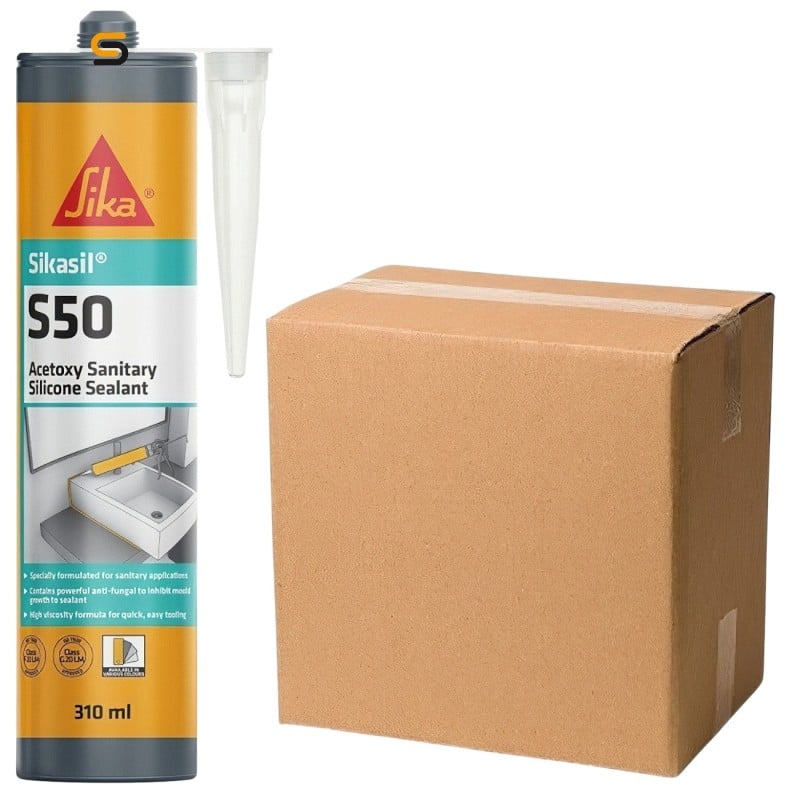 The Sika Sikasil S50 Silicone Sealant bonds effectively to a wide range of non-porous surfaces, including glass, ceramic, enamel, and certain plastics. Its acetoxy cure formula ensures strong adhesion to smooth surfaces commonly found in bathrooms and kitchens. However, it is not suitable for porous or sensitive materials like natural stone, as the acetic acid released during curing can cause discoloration or damage. For porous or specialized surfaces, testing or using a neutral cure sealant is recommended.