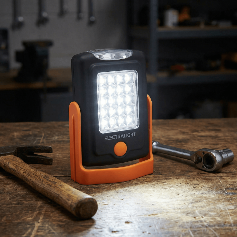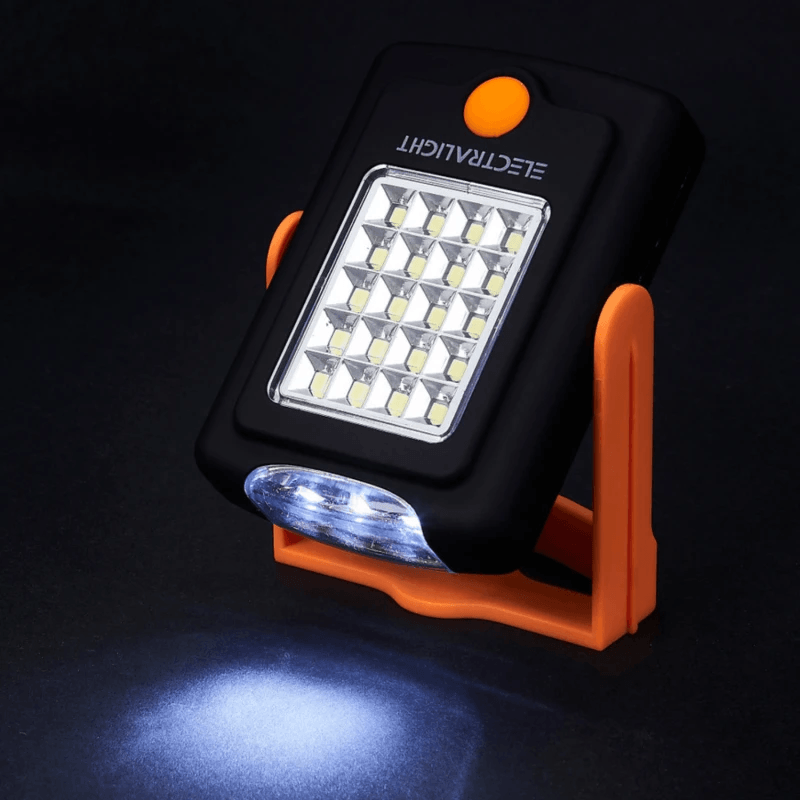The Blue Spot Tools Electralight Mini Work Light and Torch puts 100 lumens of bright SMD LED light exactly where you need it. A 20 SMD LED front panel handles general task lighting, while a 3 LED top light adds a secondary 5 lumen beam for close-up work.