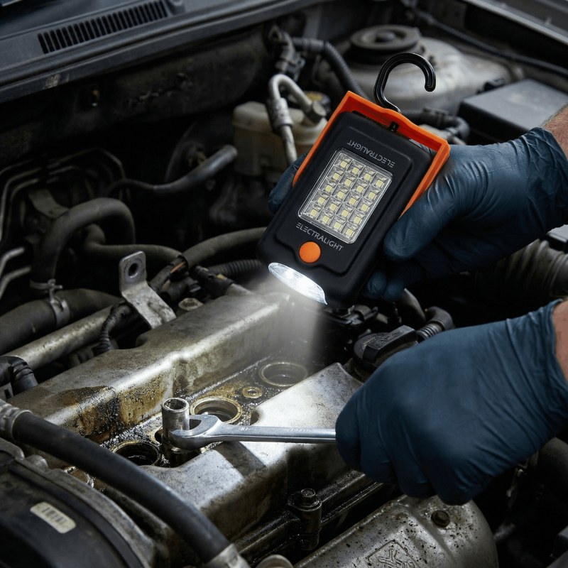 Strong magnets can affect magnetic media and some sensitive instruments. Avoid placing a magnetic work light directly on items such as key fobs, navigation systems, or exposed circuit boards. For general automotive bodywork and mechanical tasks, the magnet poses no practical risk to standard metal components.
