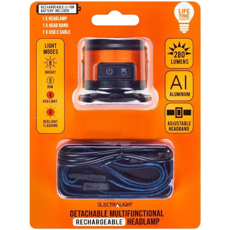 The Blue Spot Tools Electralight Detachable Rechargeable Head Light gives tradespeople and outdoor workers a practical, hands-free lighting option. Dual COB and XPG LEDs reach up to 280 lumens, with five selectable modes and up to 6 hours of runtime to cover a wide range of tasks. The magnetic detach system and built-in hook add further options for positioning the beam exactly where it is needed.