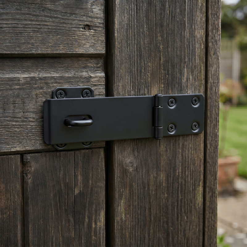Fix the Hasp: Screw or bolt the hasp securely to the door using the supplied fittings.
