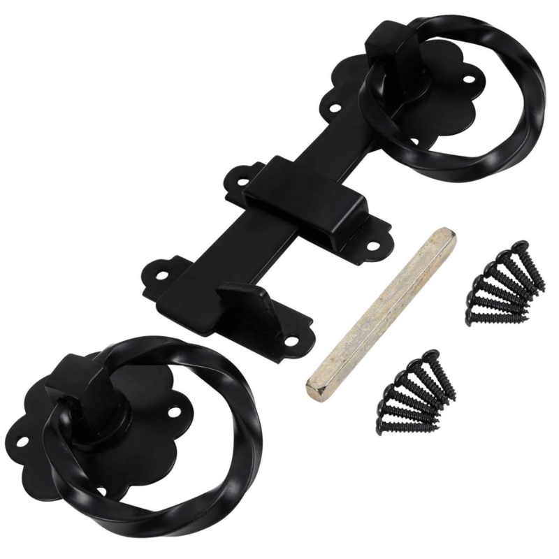 This 152mm twisted ring latch from Blue Spot Tools is made from carbon steel. The black powder coat finish protects the metal against corrosion. It suits permanent outdoor installation on wooden gates, fences, and shed doors.