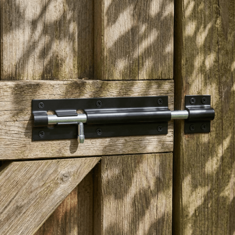 For heavy or wide gate panels, a bolt of 200mm or more gives a deeper engagement with the keep and holds the gate more firmly in the closed position. Fitting two bolts - one high and one low - is the standard approach for heavy double gates.