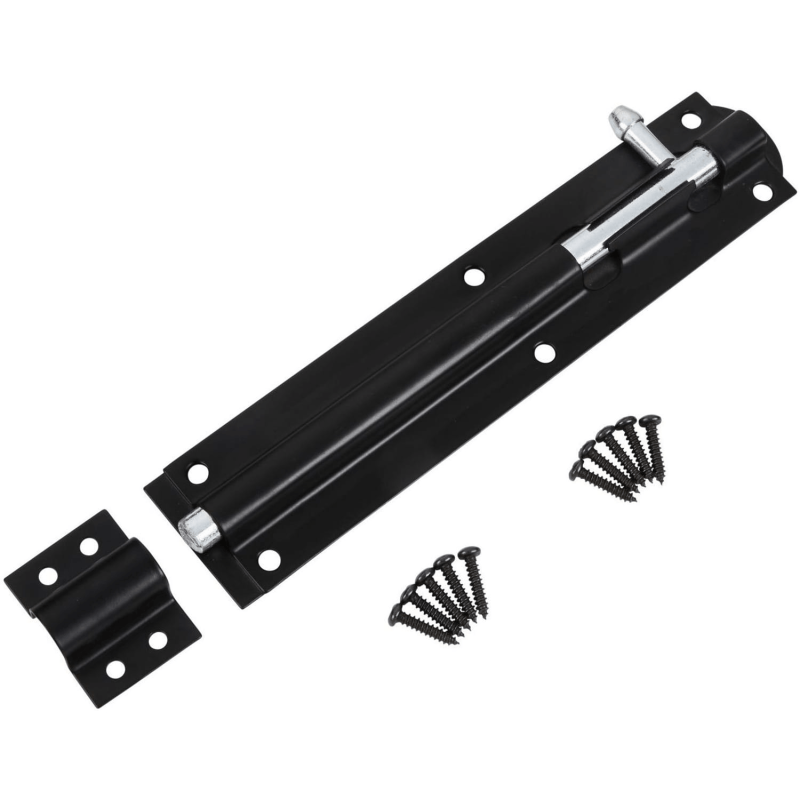 The Blue Spot Tools 200mm tower bolt is manufactured from carbon steel with a black powder coat finish, built for permanent outdoor use on wooden gates, fences, and external doors. At 200mm, the bolt provides a long, positive throw - well suited to heavy wooden gate panels and wider door openings where shorter bolts would not reach.