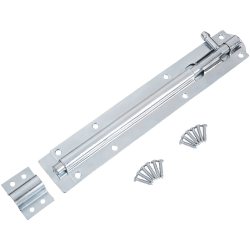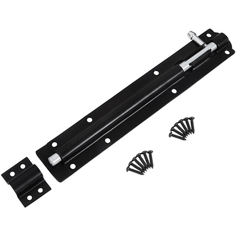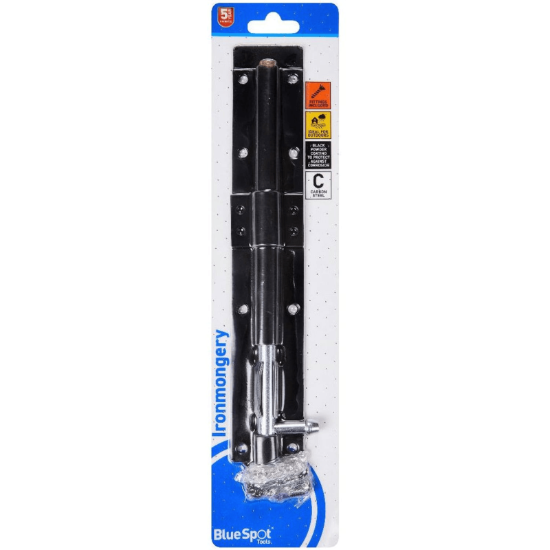 The Blue Spot Tools 250mm black powder coated tower bolt is the largest carbon steel bolt in the range, suited to heavy gate panels and large external door frames. The long throw and corrosion-resistant powder coat finish make it a practical choice for permanent outdoor use. All installation fixings are included and the bolt carries a 5 year manufacturer's guarantee.