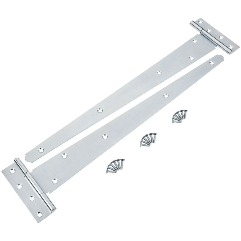 The Blue Spot Tools 450mm zinc plated tee hinge is built from carbon steel with a zinc plated finish. This protects against corrosion, making it suited to permanent outdoor installations. It comes supplied with all necessary fittings, so no additional hardware is needed before fitting.