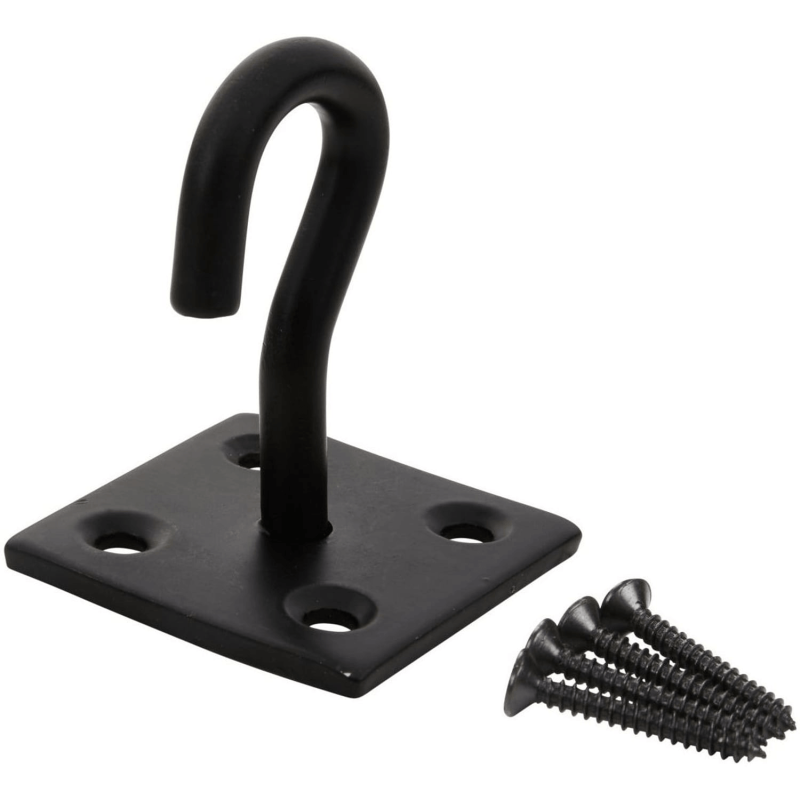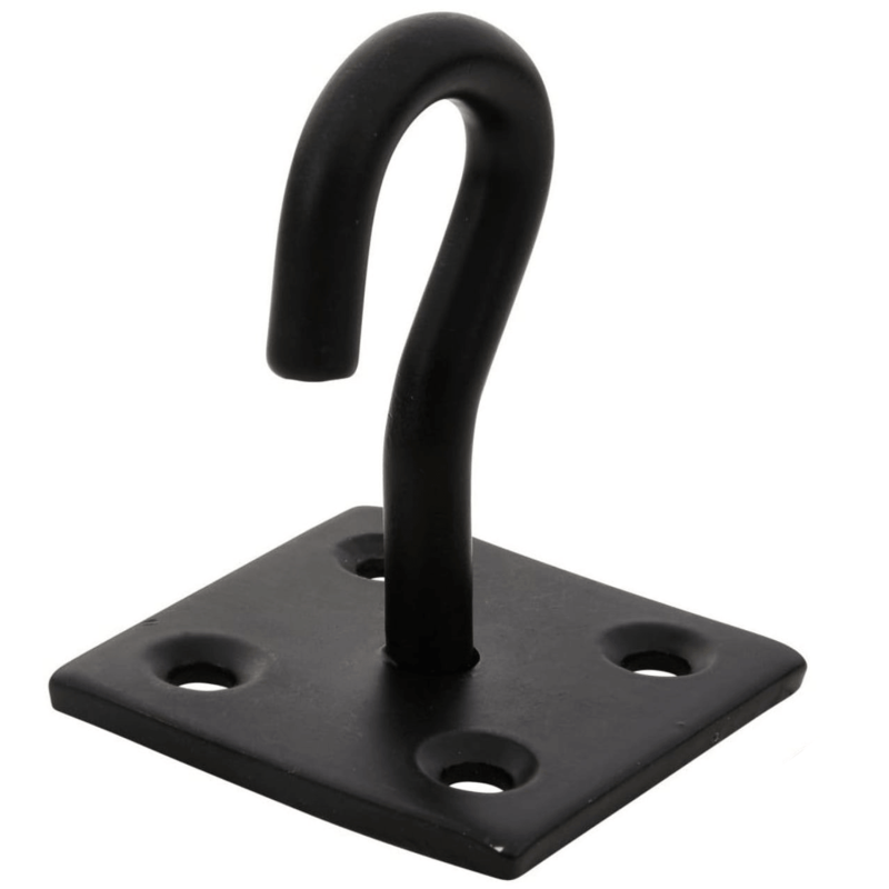 This 50mm x 50mm black powder coated hook on plate from Blue Spot Tools is made from carbon steel with a powder coated finish to protect against corrosion. It fixes permanently to wooden posts, fences, shed doors, and other outdoor timber structures.