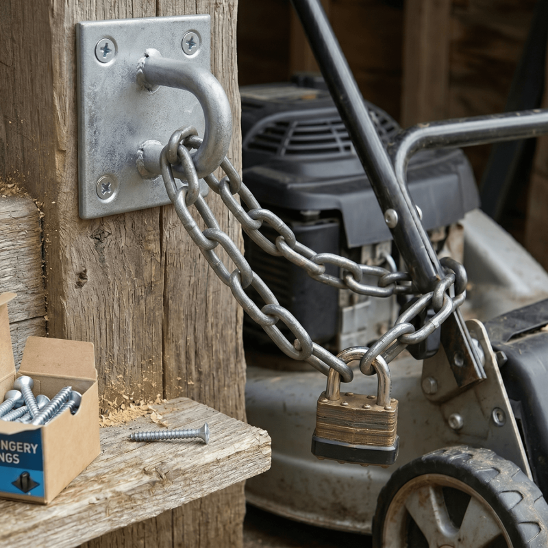 • Close and Lock: Swing the hasp arm over the staple loop and pass a padlock shackle through the loop to lock.