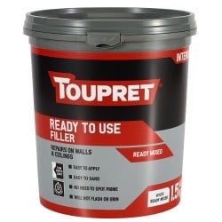 Toupret Patch & Repair Filler Ready to Use 1.5kg is a no-mix interior repair filler for gaps, cracks, scratches, and holes on most interior substrates. It sands easily, requires no spot priming, and will not flash or grin through decoration. Compliant with BS EN 16566:2014 and backed by a 12-month guarantee, this filler delivers clean, professional results for interior repair work.