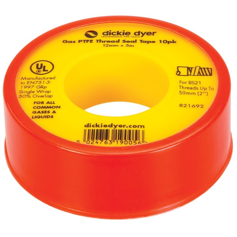 Dickie Dyer 976341 Premium Plumbers PTFE Gas Fitters Tape - Pack of 10