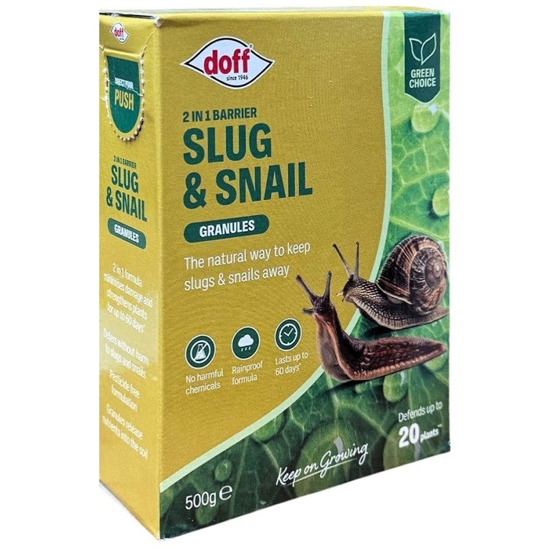 Doff 2 in 1 Slug and Snail 20 Plant Barrier Pellets 500g box a natural, chemical-free way to help protect vulnerable plants from slug and snail damage. Instead of acting as a bait or poison treatment, these pellets create a physical barrier around plants to make it harder for slugs and snails to reach stems, leaves and young growth. Supplied in a handy 500g box, this pack is ideal for smaller gardens, raised beds, pots, tubs, baskets and other targeted planting areas.