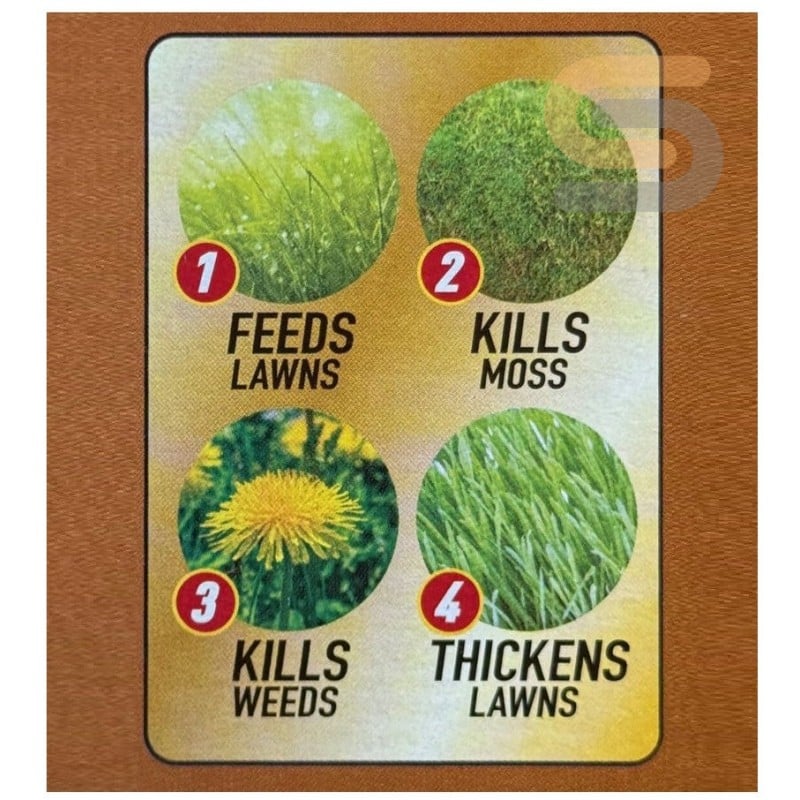 It is designed to feed the lawn, kill moss, control broad-leaved weeds and help create a thicker, greener lawn in one treatment.
