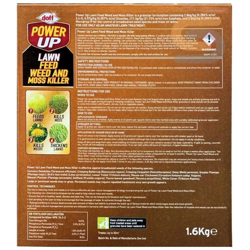 Doff Power Up Complete Lawn Grass Feed Weed and Moss Killer 100sqm 3.2kg Box F-LM-C20-DPU