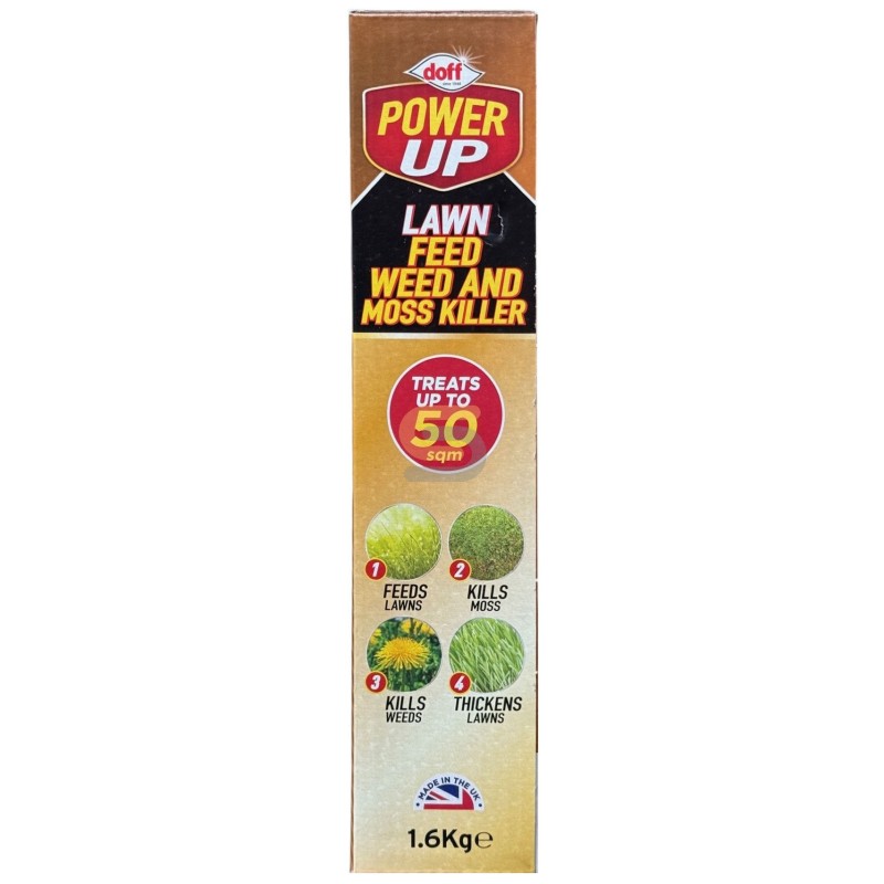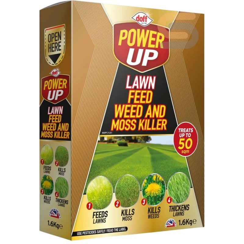 Doff Power Up Complete Lawn Grass Feed Weed and Moss Killer 50sqm 1.6kg Box F-LM-A60-DPU
