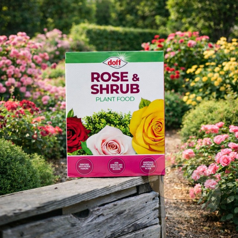 Doff Rose and Shrub Feed Plant Food Manure Enriched Fertiliser is a ready-to-use 1.5kg granular feed developed to support stronger growth, healthier foliage and more colourful blooms. Specially formulated for roses, shrubs and a wide range of garden plants, this easy-to-apply fertiliser delivers essential nutrients to encourage vigorous plants and improved flowering performance throughout the growing season.