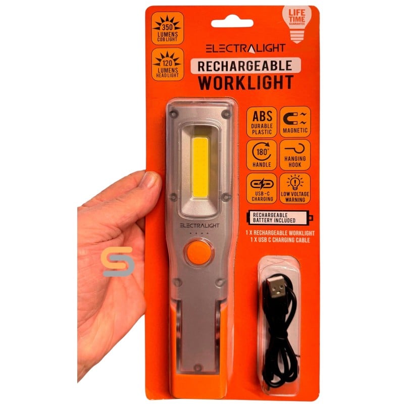 Electralight 350 Lumen Worklight 120 Lumen Torch Rechargeable Hinged Magnetic Work Light 65322