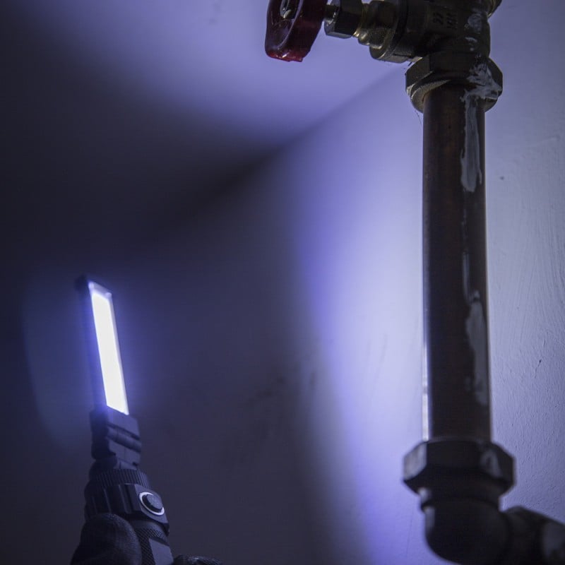 Offering up to 280 lumens and two main lighting modes (full and power-save), plus a red light function for signalling or low-visibility use, this flexible inspection lamp is ideal wherever controlled, hands-free illumination is required. A 360° adjustable head helps you direct light exactly where you need it, while the magnetic base secures the lamp to suitable metal surfaces, leaving both hands free to work.