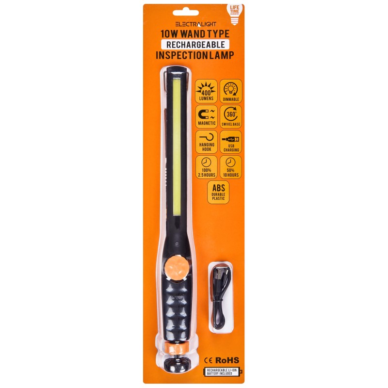 The Blue Spot tools Electralight 10W Wand Rechargeable COB Inspection Lamp 65316 – now supplied in a high-visibility orange body – is designed for both professional trades and serious DIY users who need bright, focused light in tight spaces. Producing up to 400 lumens from its COB LED strip, this slim wand-style work light is perfect for engine bays, wheel arches, lofts, cupboards, cellars and other confined areas where a standard torch struggles.