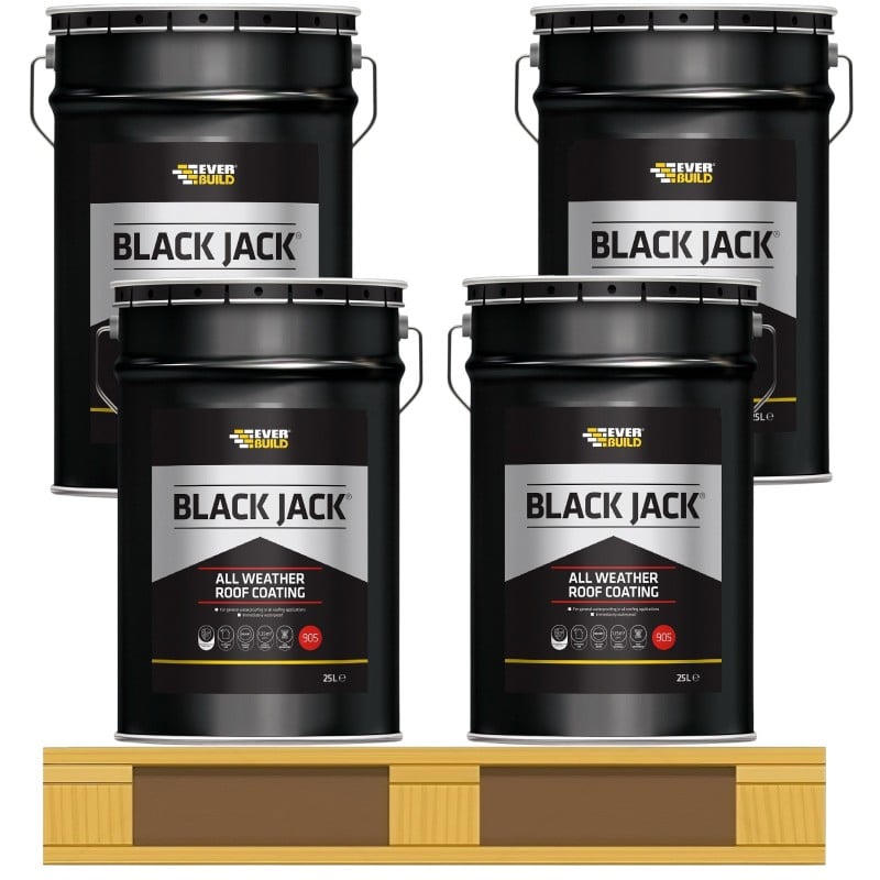 Everbuild 905 Black Jack All Weather Roof Coating 25 Litre - Pallet Deal ( 4 x 25L Drums)