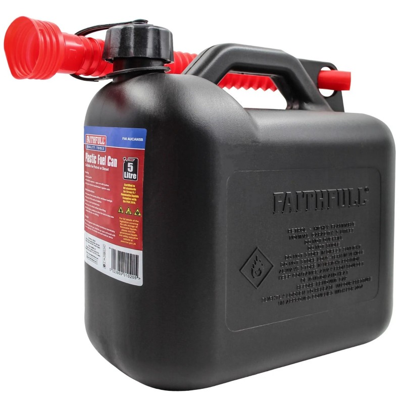 Faithfull 5 litre Plastic Fuel Petrol Diesel Can Black FAIAUCAN5B
