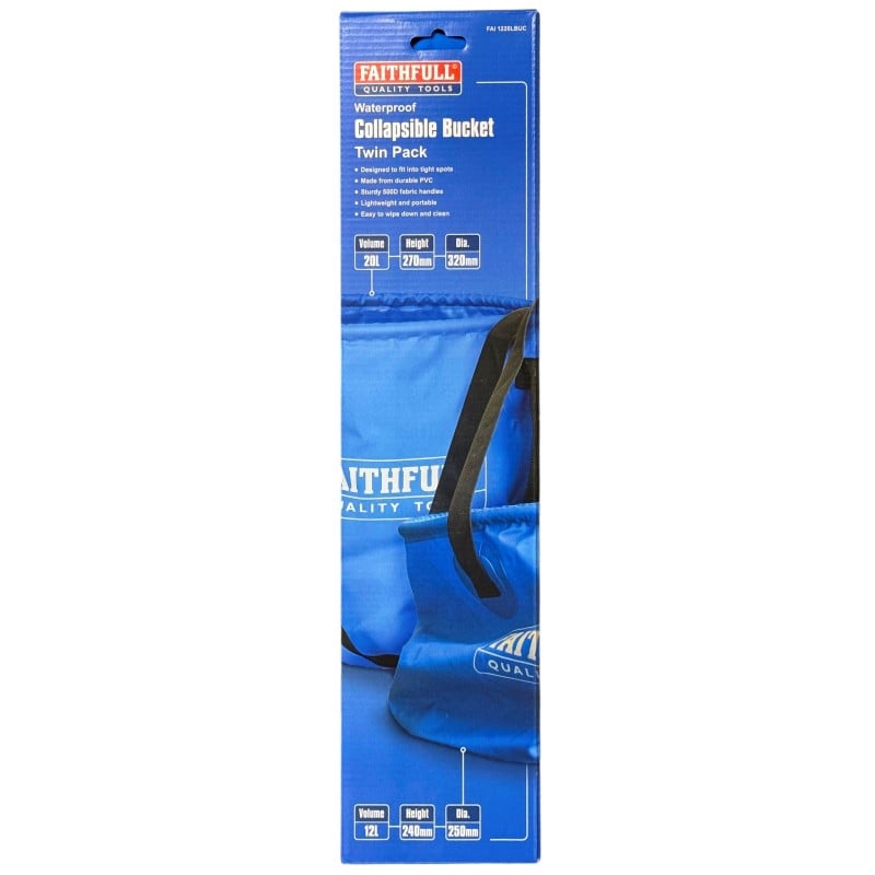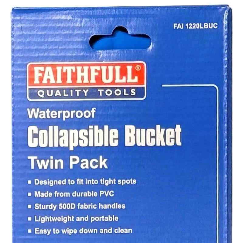 The Faithfull XMS25BUCKET Twin Pack includes a 20-litre and a 12-litre collapsible waterproof bucket – the perfect combination for plumbers, gardeners, builders, decorators, and DIYers. Whether you're draining radiators, transporting water, cleaning tools, or dealing with spills, these lightweight, heavy-duty buckets are ready for the task.