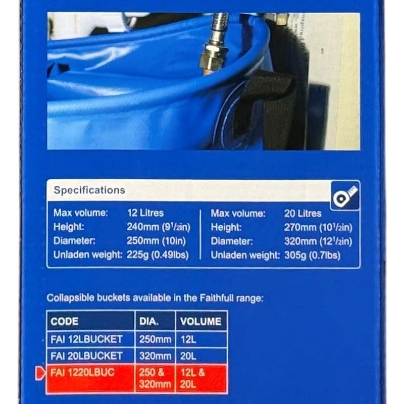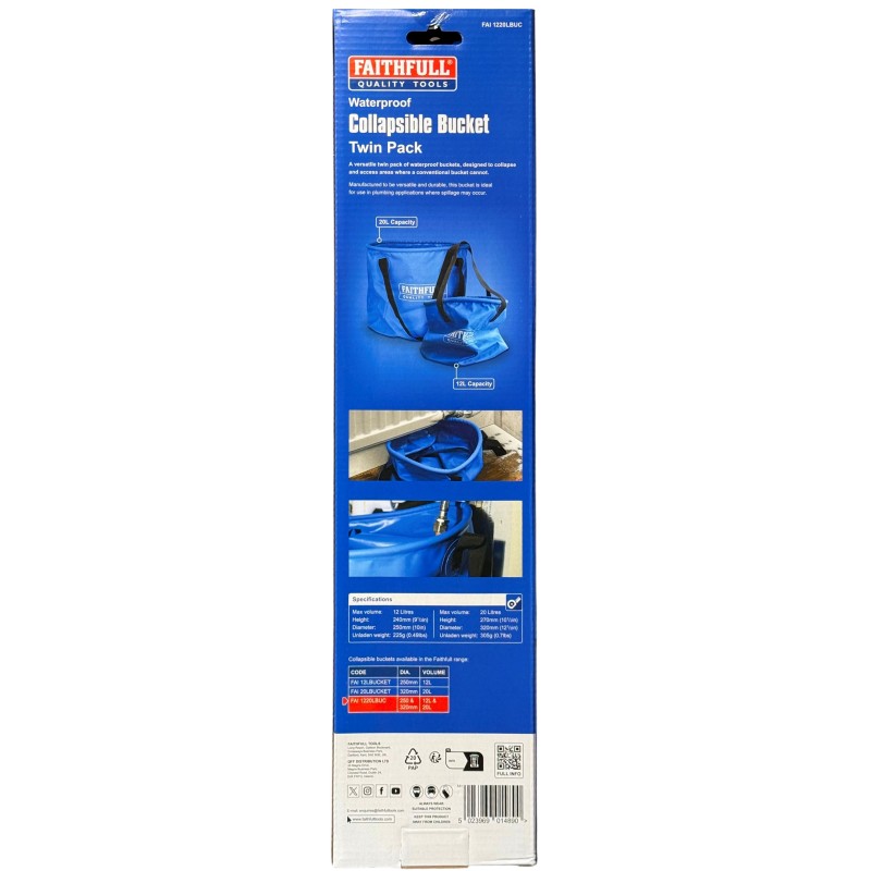 Faithfull XMS25BUCKET 20L + 12L Collapsible Waterproof Multi Use Plumbers Gardeners Builders Buckets FAI1220LBUC