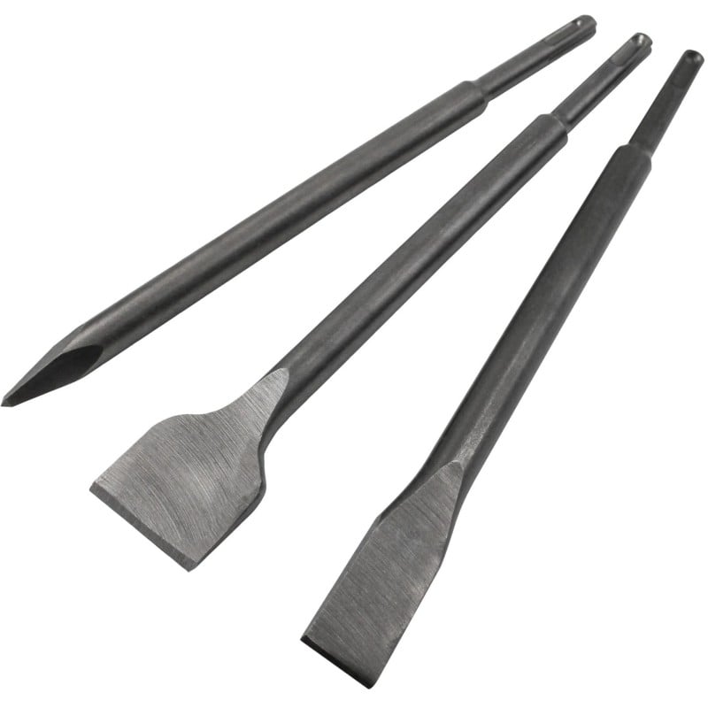The Faithfull 3 Piece SDS Plus Chisel Bit Set is built for tough demolition and corrective jobs in masonry, plaster, and concrete. Each chisel is made from high-grade heat-treated alloy steel, providing the strength needed for site or renovation work. The SDS-plus connection enables quick tool-free changes, saving time during active jobs. The set is compatible with all lightweight rotary and impact hammers fitted with SDS-plus sockets.