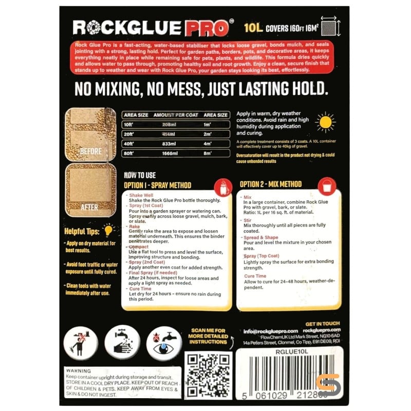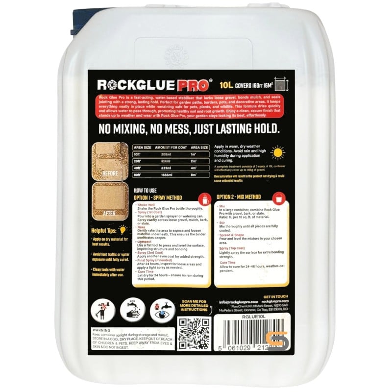 Flow Rock Glue PRO 10 Litre Ultimate Garden Decorative Rock Gravel Mulch Binder RGLUE10L