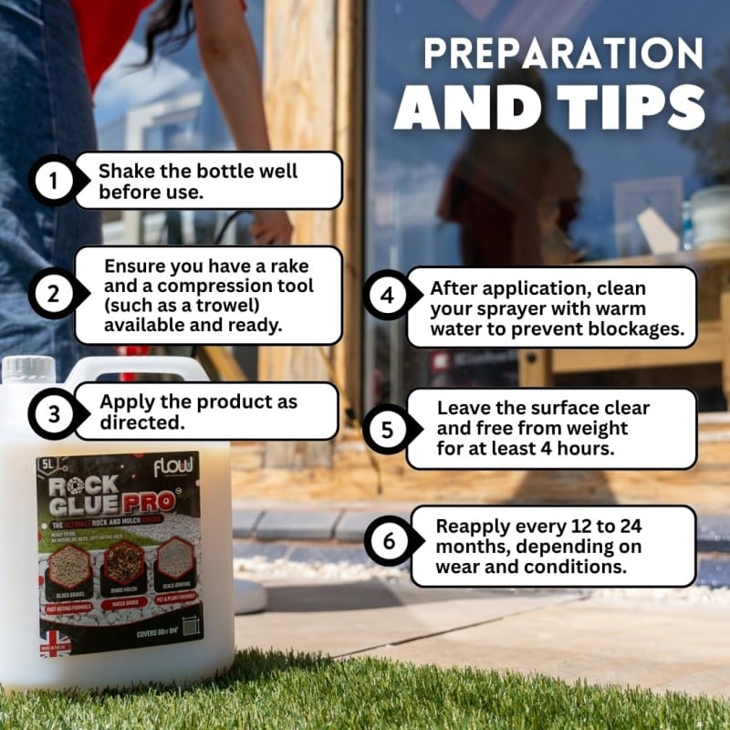You can use Flow Rock Glue PRO in two main ways, depending on whether you’re treating an existing area or laying new aggregate.