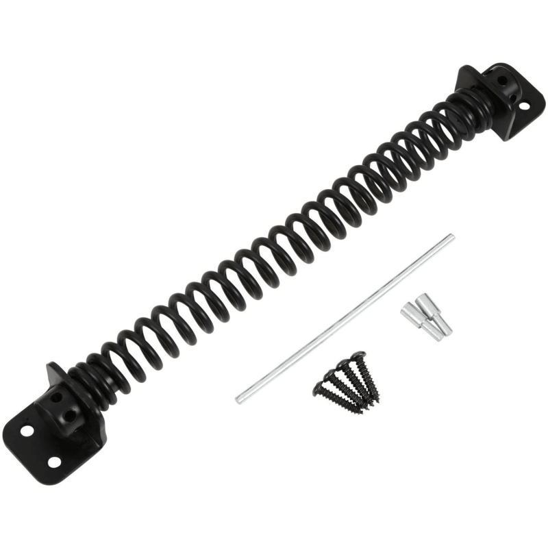 A gate spring uses stored tension to pull the gate back to its closed position after opening. Pushing the gate open tightens the spring coils. When released, that tension draws the gate shut.