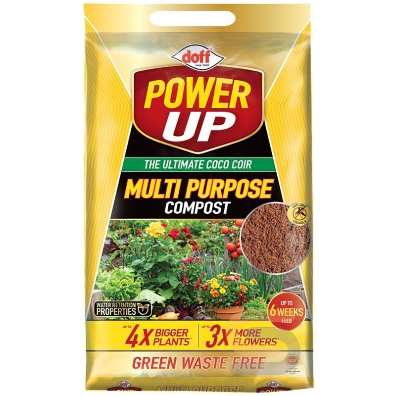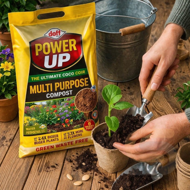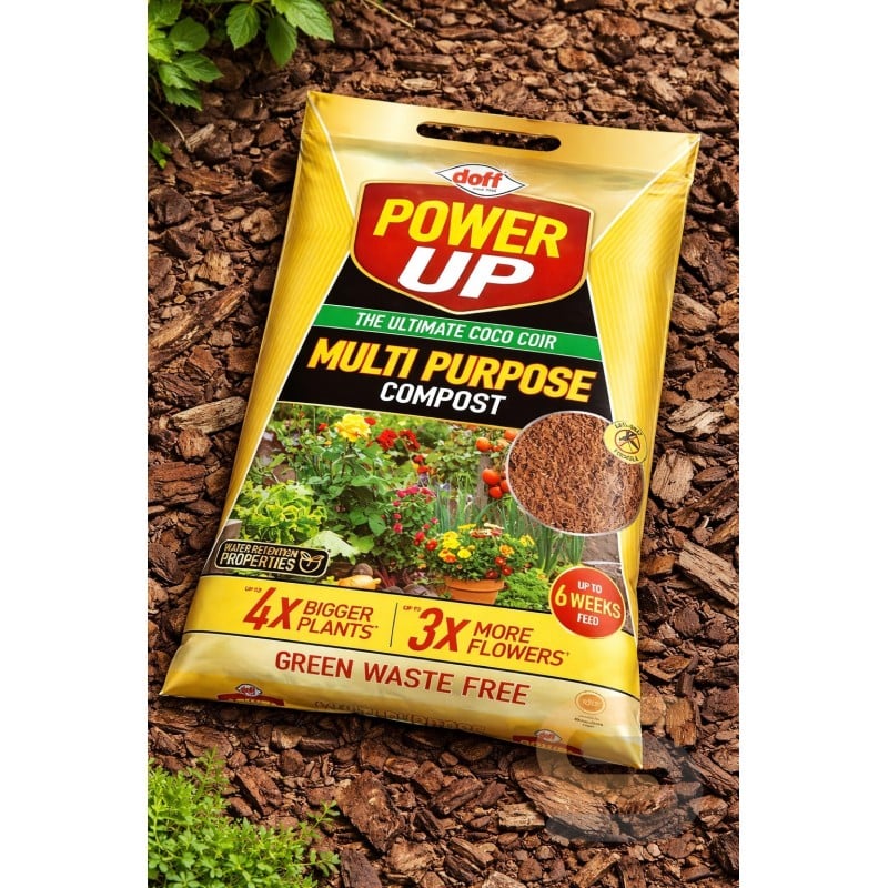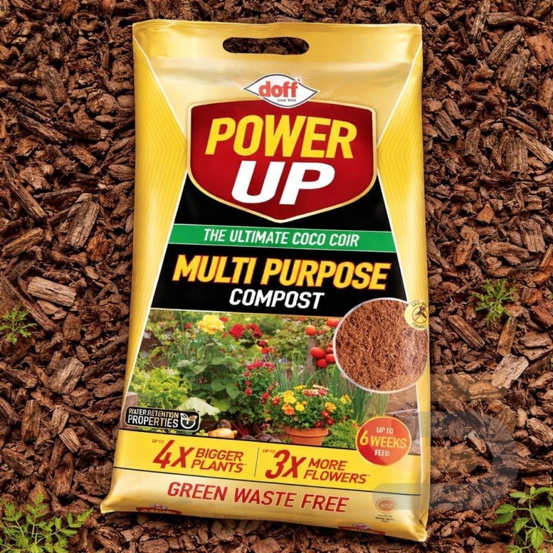 Doff Power Up Multi Purpose General Purpose Compost 10 Litre Bag is a lightweight, peat-free growing medium made from professional quality coco coir. Designed for everyday gardening tasks, it is suitable for sowing seeds, potting on, repotting, and planting flowers, fruit, and vegetables. The fine texture supports healthy root development, while the compost stays open and workable without over-packing in pots and containers.