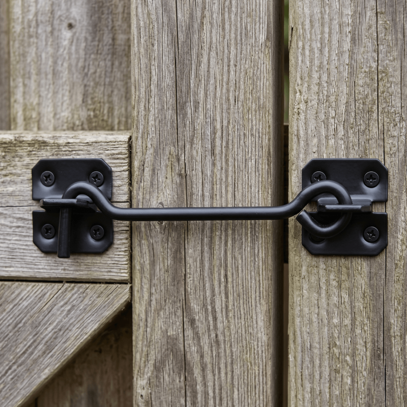 The hook suits permanent outdoor use on wooden gates, garden fences, and shed doors. Its straightforward two-part hook-and-eye design makes installation accessible to most home users and trade professionals.
