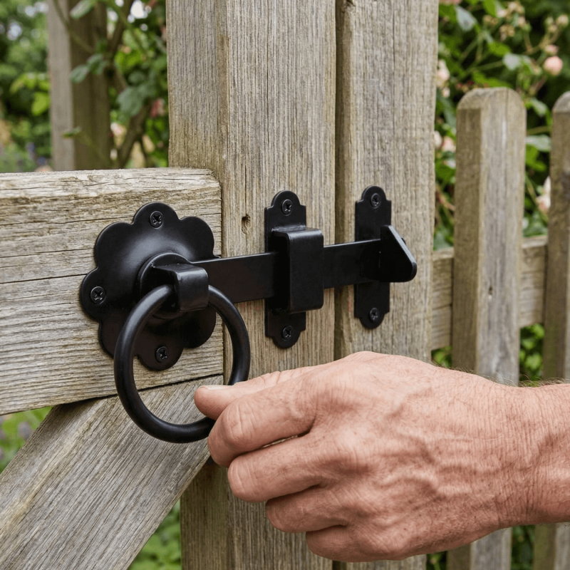 Ring latches are designed for wooden gates, where screws can grip the timber directly. Metal or PVC gates need fixings and hardware specifically rated for those materials.