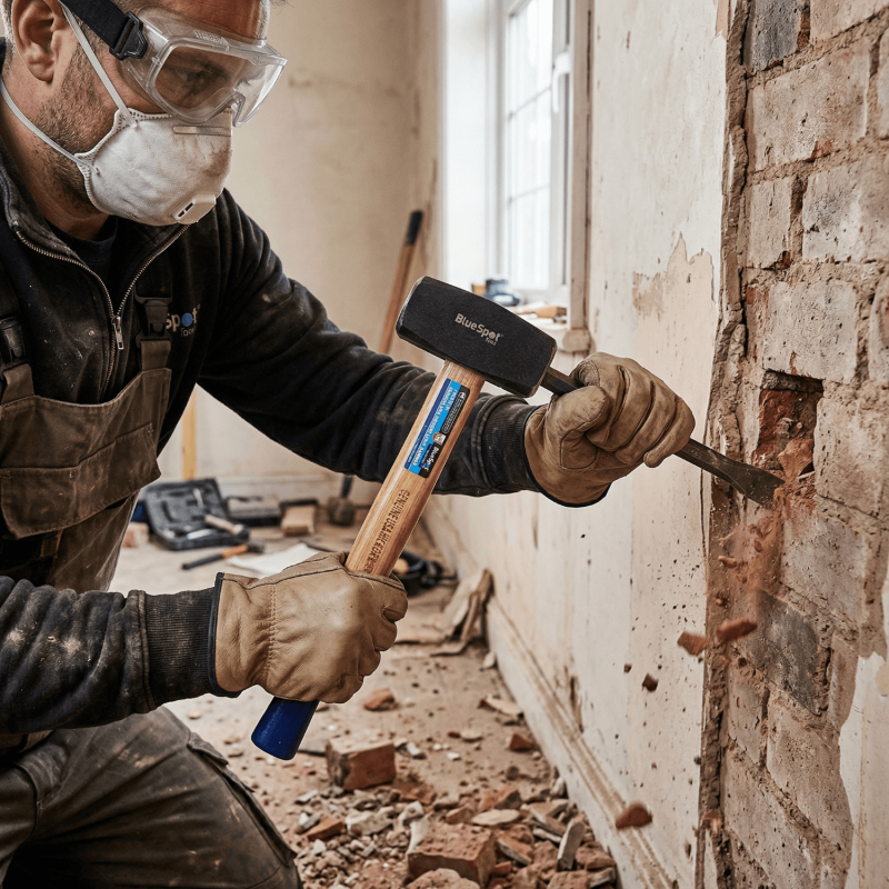 Protect: Wear safety goggles and gloves when striking masonry or chisels to guard against flying debris.