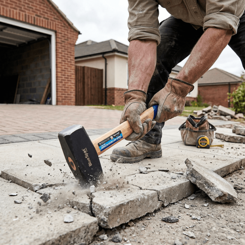 A lump hammer is used for driving chisels, bolsters, and masonry nails. It also suits demolition work, breaking paving slabs, and general groundwork where a short-handled, heavy blow is needed.