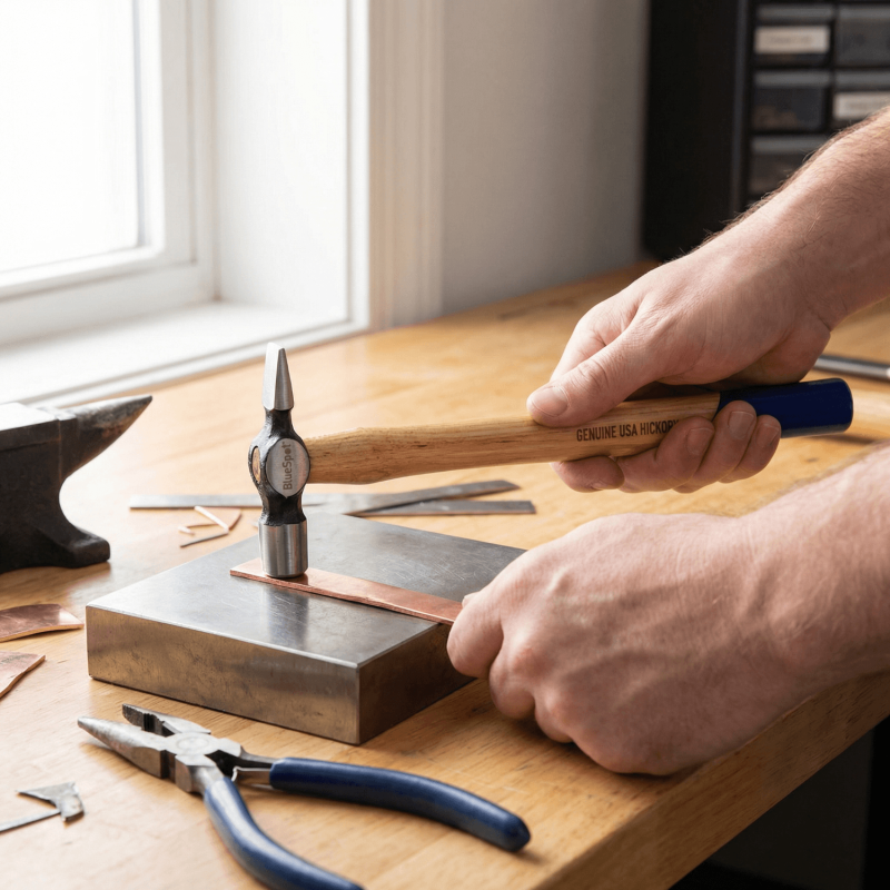 Yes. The cross pein end works well for cold riveting and light shaping tasks on soft metals. For heavier metalwork, a ball pein hammer with a more substantial head weight is generally the better choice.