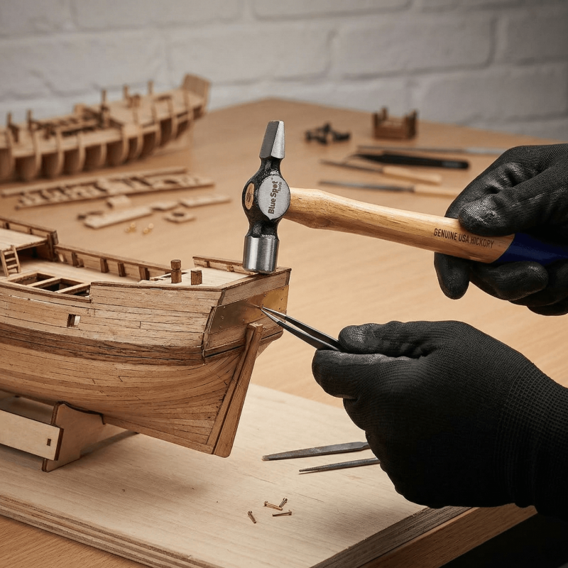 A pein hammer drives small nails, tacks, and pins into timber or joinery. The cross pein end lets you tap a nail into starting position without holding it between your fingers, which is particularly useful in tight or awkward spots.