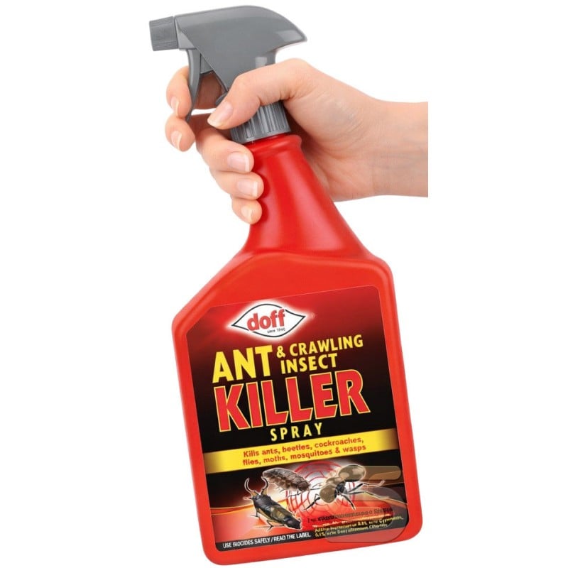 Doff Ant and Crawling Insect Killer Spray 1 Litre is a ready-to-use fast-acting insect control spray designed for use in and around the home where crawling pests are a problem. This practical trigger spray helps deal with ants, cockroaches, beetles, earwigs, fleas, silverfish, woodlice and other nuisance insects by contact.