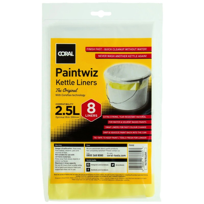 The Coral Coreflex Trade (Pack of 8) Disposable 2.5 Litre Paint Kettle Liners a simple way to speed up decorating and cut out the messy clean-up that comes with swapping paints. Designed to sit neatly inside a 2.5L paint kettle, these soft, shaped liners let you change colour or product type quickly without rinsing out a kettle between coats. They’re also a cleaner option on site, helping reduce paint-contaminated wash water going down drains.
