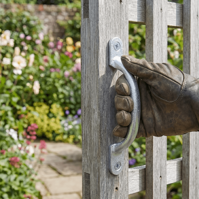 100mm handles suit smaller shed doors and compact gate panels. Larger options at 150mm or 180mm are better suited to heavier gates or wider doors, where a longer grip span is more practical.