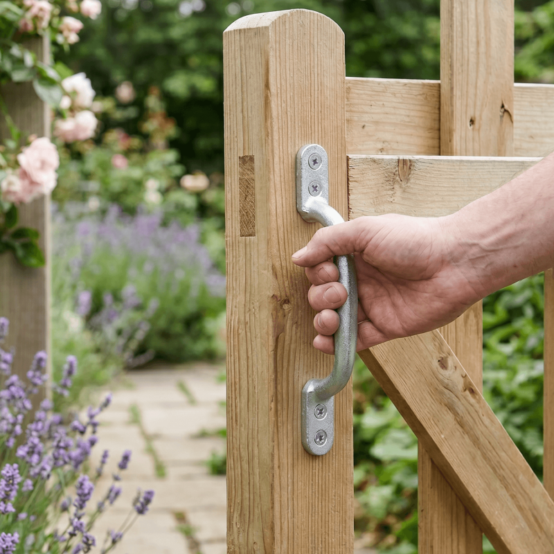 Mark the Position: Hold the handle against the door or gate surface and mark the desired placement.