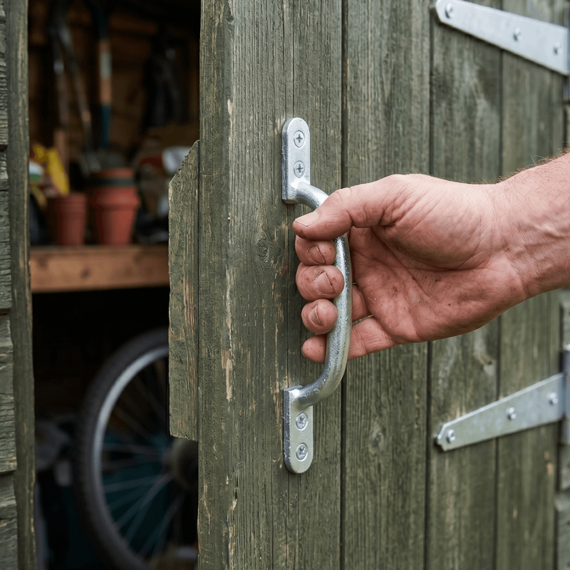 Hot bed handles are commonly available in 100mm and 150mm lengths. The 150mm size suits standard shed doors and garden gates. The 150mm size is better suited to larger or heavier doors.