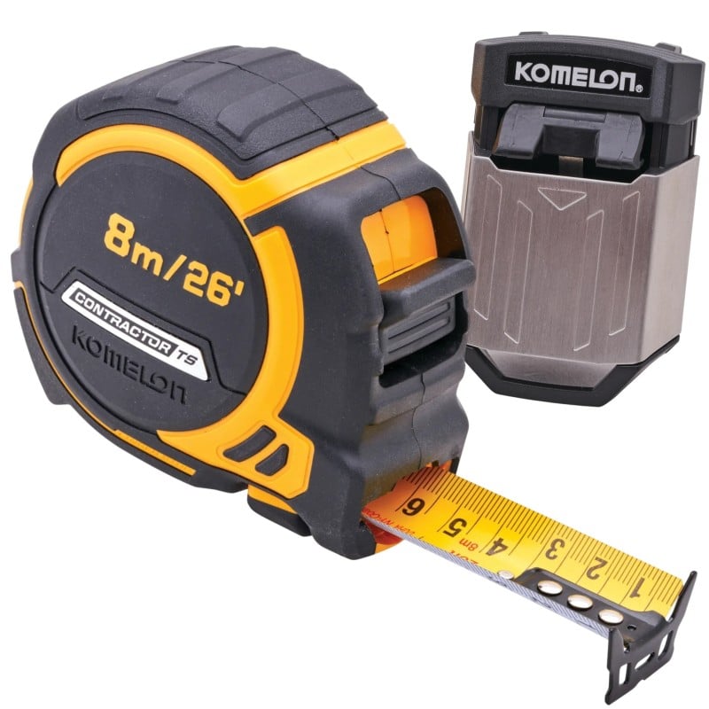 Get accurate measurements every time with the Komelon 8m (26ft) Contractors Tape with Free Belt Clip. Available now from Sealants & Tools Direct.