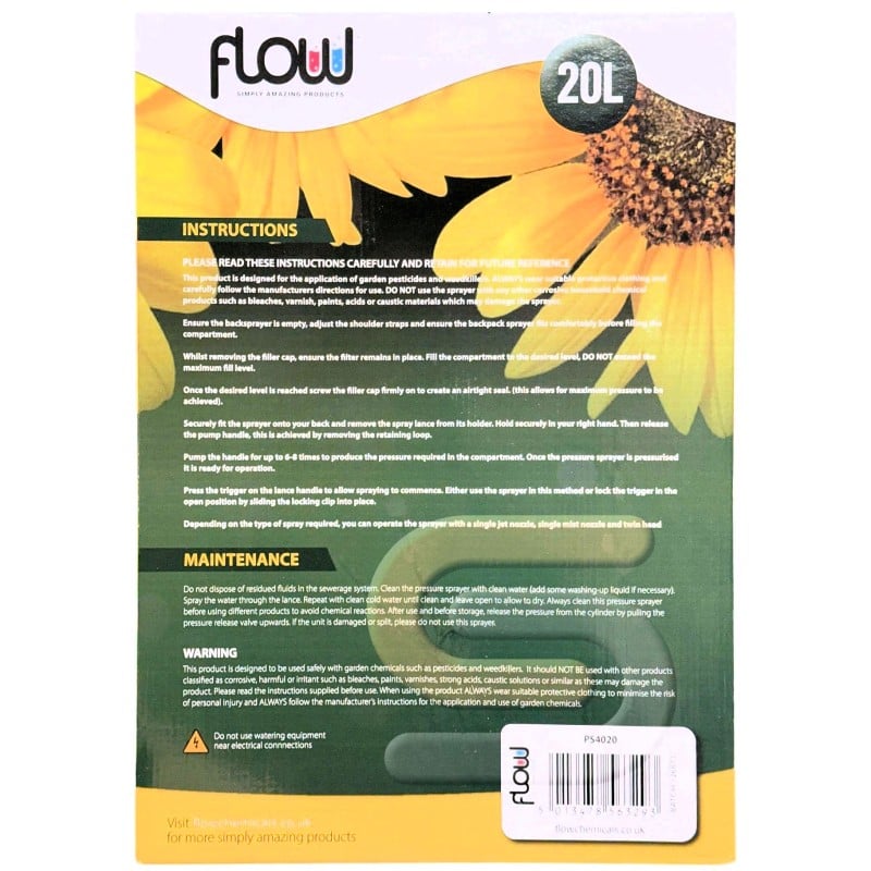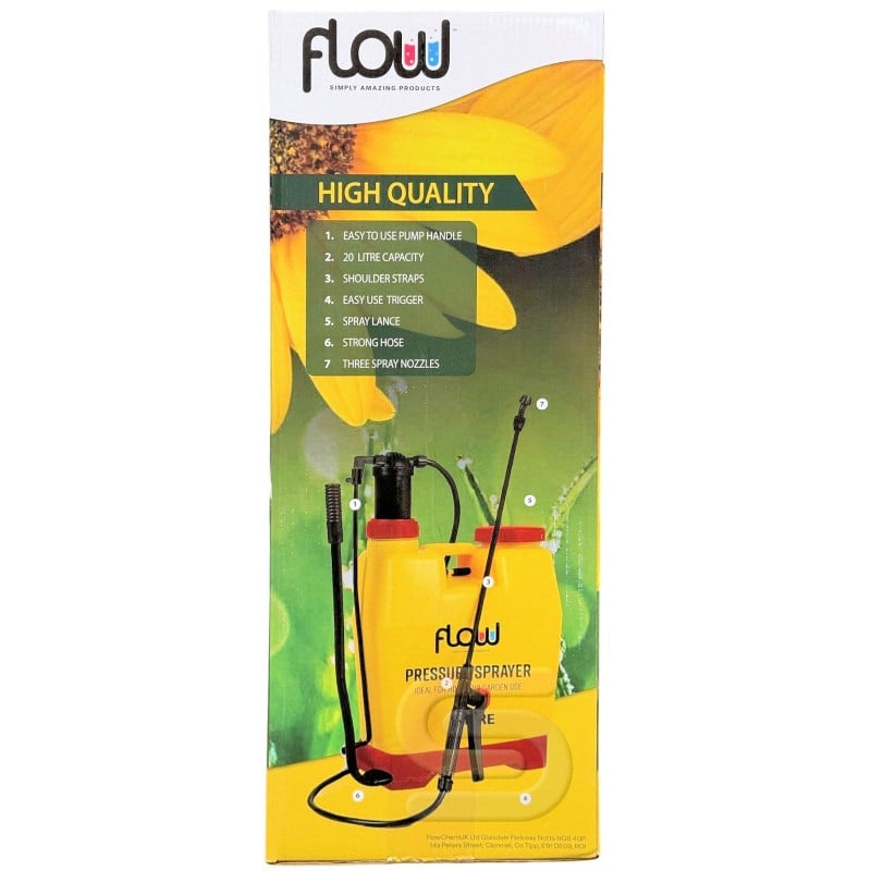 Flow Garden Pro Garden Backpack Pressure Sprayer Water Pesticide 20 Litre Long Reach Sprayer for Water Pesticide Herbicides PS4020