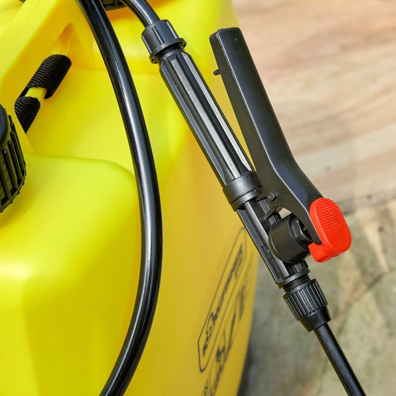 20 litre hand pump Back Pack garden pressure sprayer this sprayer a comfortable contoured back sprayer with double shoulder harness and strong integrated carry handle, for when not on the back it benefits from having a large filling hole with integrated filter to minimise blockages, it features a long reach lance with adjustable nozzle and trigger lock, perfect for spraying water and diluted herbicides, pesticides, insecticides, and fungicides, and is ideal for use around the garden Greenhouse and home.