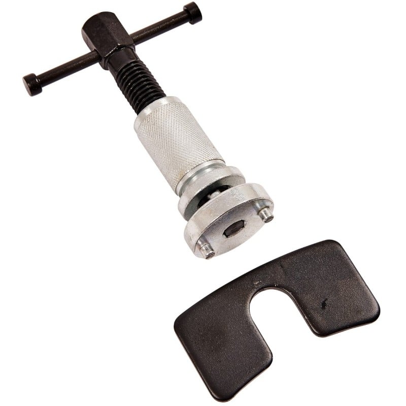 The Amtech (I8020) Brake Piston Wind Back Tool is a practical workshop essential for rewinding disc brake caliper pistons during brake pad replacement and servicing. Designed for right-hand thread calipers commonly found on many European and Japanese vehicles, it helps you retract the piston smoothly and safely, reducing effort and saving time compared to improvised methods. The kit includes a reaction plate and a reversible dual pin head, along with two adaptor sizes to suit different pin centre spacings. A 19mm hex end allows easy use with a socket or spanner for controlled turning and consistent results.