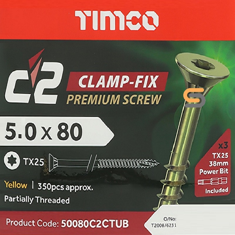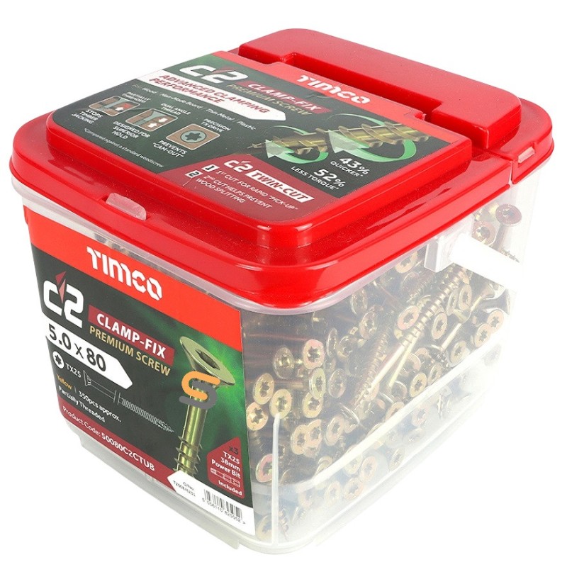 Timco C2 Clamp Fix Premium Torx TX25 Drive Wood Screw 5.0 x 80mm - 50080C2CTUB
